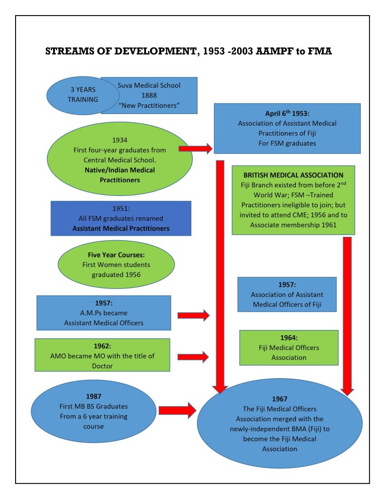 So the Fiji School of Medicine graduates,with their 4-5 year Diploma of Surgery and Medicine (DSM) formed their own association, and immediately inaugurated the Annual Scientific Conference, which has happened ever since excpt for 1987, and possibly during COVID —— Going back to 1950’s, soon after FMA was formed, the expat colonal doctors asked if they might attend the annual scientific etc, and the answer was ‘yes’; Soon after the Fiji branch of BMA dissolved itself as a branch and transferred its assets and membership to FMA;